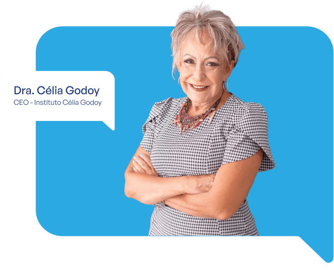 Dra. Célia Godoy é a fundadora do Instituto que leva o seu nome e dedica-se ao desenvolvimento e ao aprimoramento da área educacional, sendo referência nesse campo.